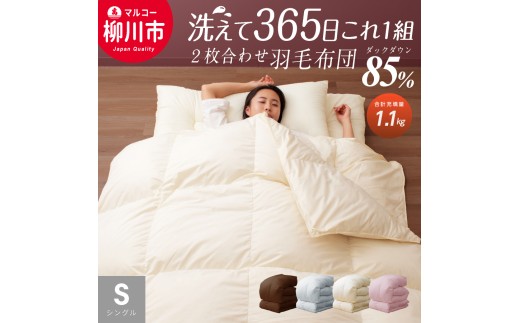 【オールシーズン対応】 〈選べるカラー〉 洗える 2枚合わせ 羽毛布団 シングル ホワイトダックダウン 85% (08+03) (150cm x 210cm) (アイボリー / オリーブグレー / ベージュ / ブラウン) 通年 羽毛 省スペース 来客 春 夏 秋 冬 布団 ふとん フトン エクセルゴールドラベル パワーアップ加工 福岡県 柳川市