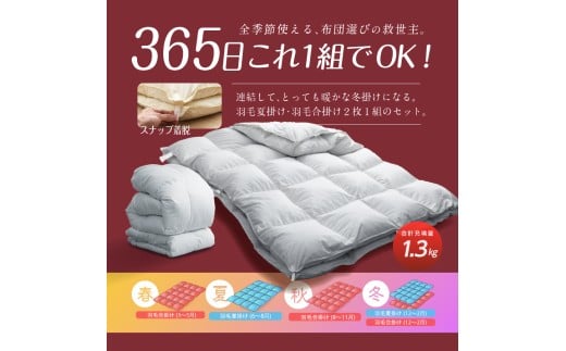 夏掛け+合掛けの2枚セットで、季節に合わせて使い分け可能。
