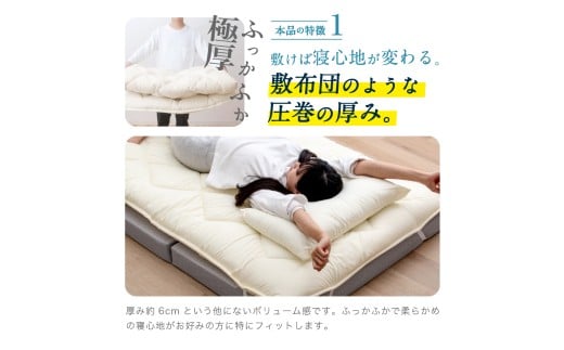 寝心地が生まれ変わる、圧巻の厚みを誇る敷きパッドです。