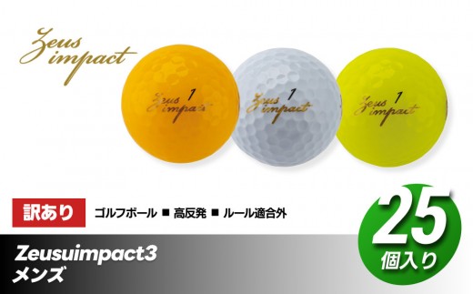 訳あり ゴルフボール 25個入り Zeusuimpact3 メンズ プリントミス 不揃い キャスコkasco ゼウスインパクト 非公認球 ゴルフ