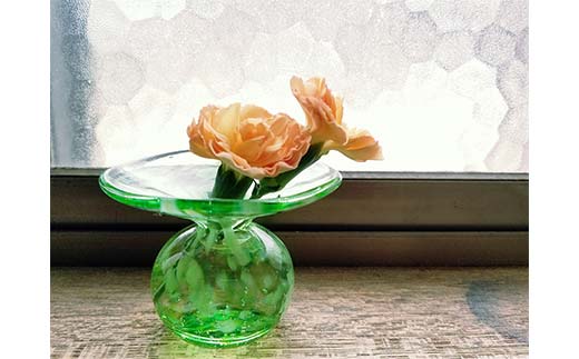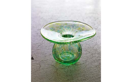 <ガラス作家 松尾具美>巾着花入れ「木漏れ日」 吹きガラス 硝子 ガラス 花器 花瓶 巾着 松尾具美 贈り物 ギフト F6L-1253