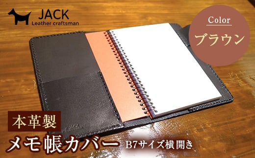 7. 本革製メモ帳カバー B7横開き <ブラウン> 牛革 本革 横開き メモ帳カバー B7 横開き 国産牛革 革製品 贈り物 ギフト 国産 ブラウン F6L-204