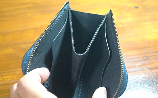 ハンドメイドのヌメ革製L字ファスナー開閉式コインポーチ。