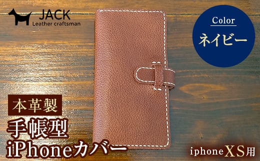 本革製手帳型iPhoneカバー iPhoneXS用 <ネイビー> 国産牛ヌメ革 スマホ 手帳型 カバー iPhone iPhoneXS 本革 レザー 革製品 ハンドメイド ネイビー F6L-242