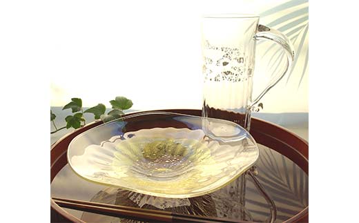 <ガラス作家 池本美和>皿&ジョッキ「花と風の揃え」 吹きガラス 硝子 ガラス 皿 ジョッキ セット 池本美和 贈り物 ギフト F6L-468
