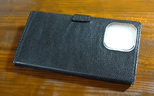 ハンドメイドのヌメ革製手帳型スマホカバー(iPhone13ProMax用)
