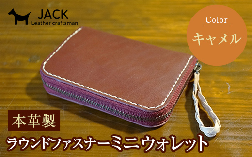 本革製ラウンドファスナーミニウォレット キャメル F6L-385