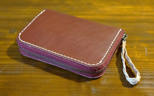 【内容】ハンドメイドのヌメ革製ラウンドファスナーミニウォレット。