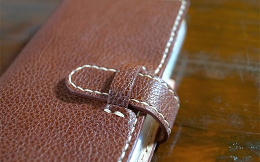 ハンドメイドのヌメ革製手帳型スマホカバー(iPhone14用)