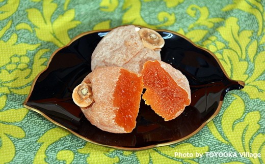 もっちりとした食感と上品な甘さがお茶請けぴったりです。干すことによって旨みが凝縮し、柿の表面に甘みの元となる白い粉を纏います。