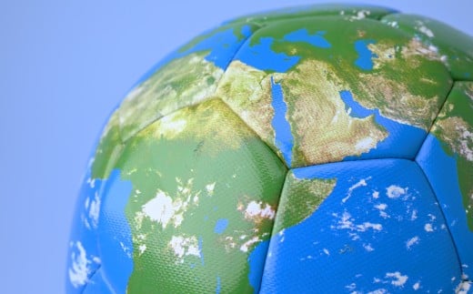 蹴ったり投げたりできる、サッカーボール型の地球儀!