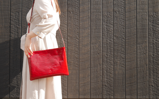 【ふるさと納税限定10本】 横長サコッシュ 牛革型押しエナメルバージョン | 埼玉県 草加市 職人 手作業 上質 ギフト お祝い お洒落 革職人会 バッグ 革 サコッシュ プレゼント 赤 レッド エナメル 牛革 ショルダー 使いやすい 便利 おしゃれ 楽 革バッグ 革製品 女性 シンプル 澤村バック