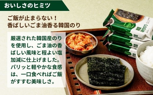 子供から大人まで楽しめる程よい塩味とごま油の香ばしさがおいしい韓国味付けのり!!