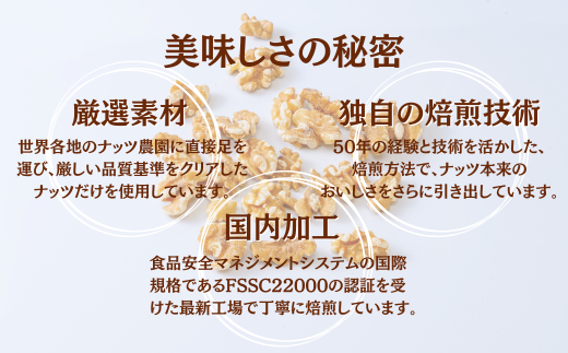 50年の焙煎技術が引き出すナッツ本来の旨み。チャック付きパックで、いつでも新鮮!