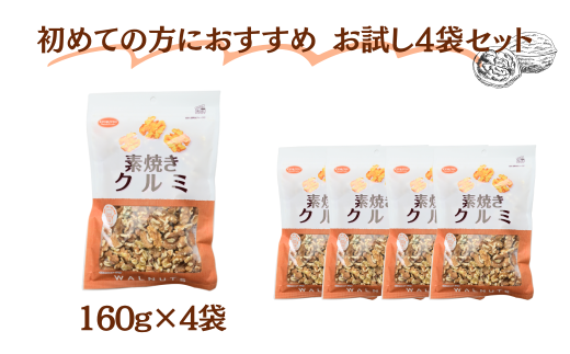 素焼きクルミ 徳用 160g 4袋 合計640g | ナッツ 無塩 食塩不使用 植物油不使用 素焼き クルミ くるみ 胡桃 個包装 チャック付き 保存食 ロカボ 低糖質 高品質 安心 徳用 定番 おいしい おすすめ 人気 共立食品 埼玉県 草加市