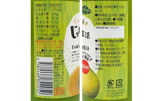 青搾りじゃばらストレート果汁 360ml×2本セット
