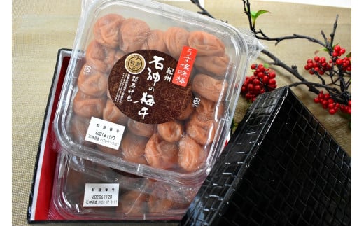 高級南高梅うす塩・はちみつ梅計800g入 紀州塗箱 網代模様仕上 【SW76】