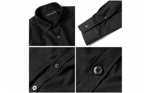 DJS-777 decollouomo メンズドレスシャツ 長袖(生地/オーヴァーチュア)スタンダードタイプ ブラック/Sサイズ