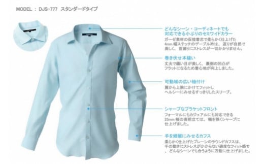 DJS-777 decollouomo メンズドレスシャツ 長袖(生地/オーヴァーチュア)スタンダードタイプ ライトブルー/LXLサイズ