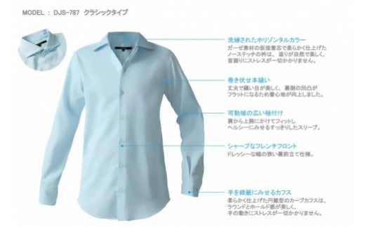DJS-787 decollouomo メンズドレスシャツ 長袖(生地/オーヴァーチュア)クラシックタイプ ライトブルー/Mサイズ