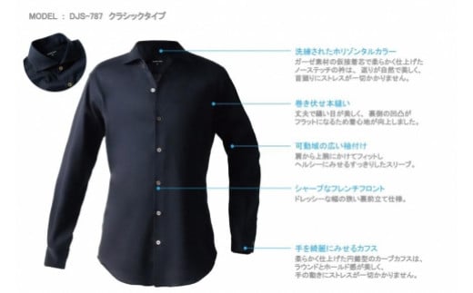 DJS-787 decollouomo メンズドレスシャツ 長袖(生地/オーヴァーチュア)クラシックタイプ ダークネイビー/Mサイズ
