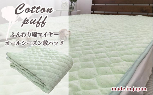 ふわふわコットンマイヤー敷パッド セミダブルサイズ グリーン(120×205cm)×1枚
