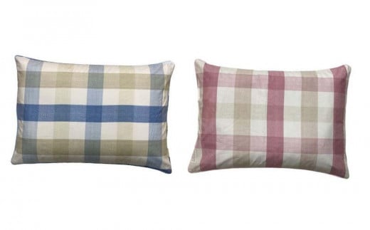 《パイプ枕 カバー2枚付 35x50cm チェック ブルー》パイプ枕マドラスBL