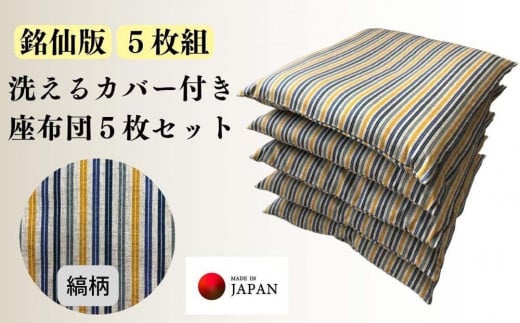 《洗えるカバー付き座布団 5枚セット》座布団縞5P