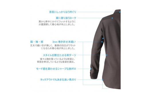 DJS-777 decollouomo メンズドレスシャツ 長袖(生地/オーヴァーチュア)スタンダードタイプ エベーヌグレー/LXLサイズ