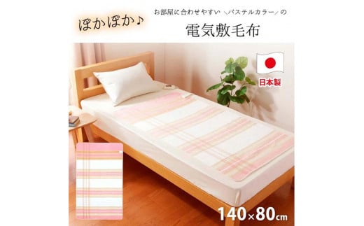 【ピンク】『和』【140×80cm】暖か・節電ソフトタッチ電気敷毛布(チェック)SB-20S02-PI