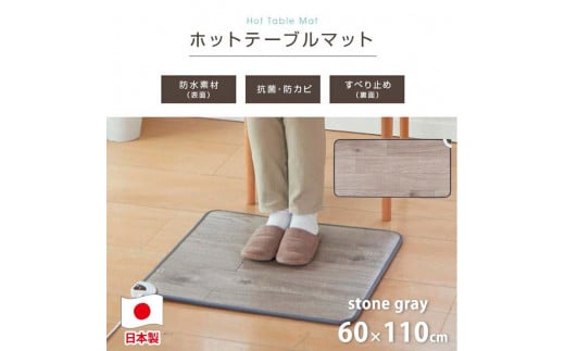 【60×110cm】暖か・節電ホットテーブルマット(ストーングレー)×1枚