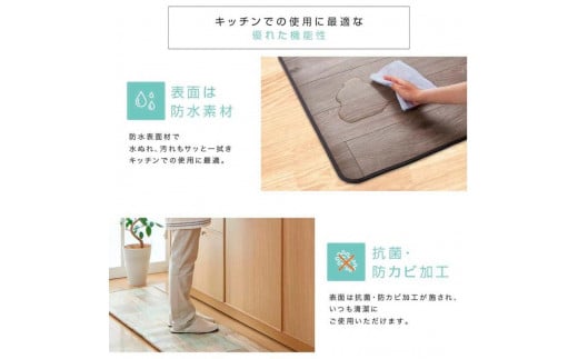 【45×90cm】暖か・節電ホットキッチンマット(ストーングレー)×1枚
