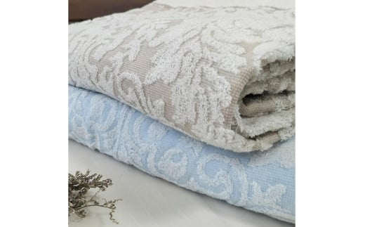 【2枚組】高級ジャガード織りタオルケット シングルサイズ×1セット(ベージュ1枚・ブルー1枚)