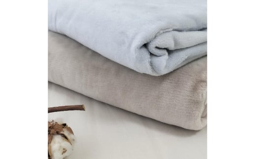 【2枚組】椿オイル加工 ふんわり綿毛布 シングルサイズ(140×200cm)×1セット(ベージュ1枚・グレー1枚)