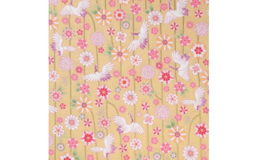 【イエロー】紀州晒 紀州和晒 シーチング コットン 綿 綿100% 生地 布 民芸シリーズ 民芸 鶴 小花 小柄 花柄 和風 WAGARA おしゃれ ハンドメイド 手芸 手作り 3m 約110cm