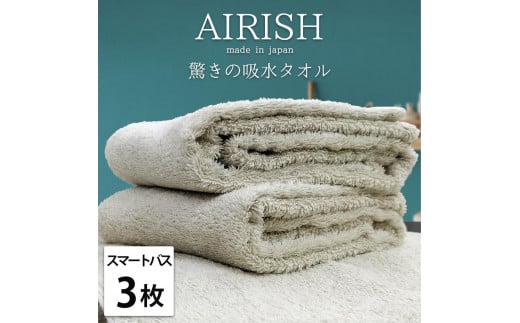 【スマートバス3枚】高吸水スーパーゼロふわふわスマートバスタオル(34×120cm)エアリーシュ×1セット(フォグ3枚)