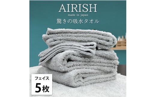 【フェイス5枚組】高吸水スーパーゼロふわふわフェイスタオル(34×80cm)エアリICE-F5
