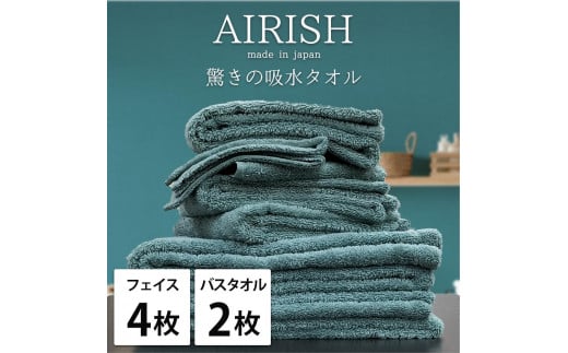 高吸水スーパーゼロふわふわフェイス&バスタオルセット エアリーシュ×ミント1セット(フェイスタオル4枚・バスタオル2枚)