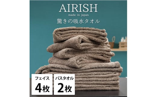 高吸水スーパーゼロふわふわフェイス&バスタオルセット エアリーシュ×チョコブラウン1セット(フェイスタオル4枚・バスタオル2枚)