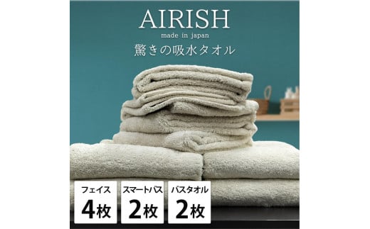 高吸水スーパーゼロふわふわタオルセット エアリーシュ ×【フォグ】1セット(フェイスタオル4枚・スマートバスタオル2枚・バスタオル2枚)