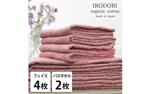 【フェイス4枚・バス2枚組】オーガニックコットンタオルセット 彩りRE-F4B2