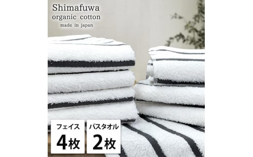 【フェイス4枚・バス2枚組】オーガニックコットンタオルセット しまふわGY-F4B2