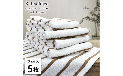 【フェイスタオル5枚組】オーガニックコットンフェイスタオル(34×80cm) しまふわBR-F5