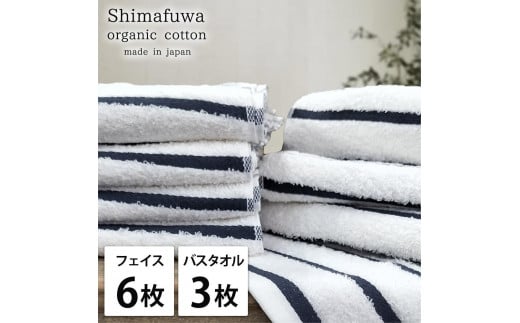 【フェイス6枚・バス3枚組】オーガニックコットンタオルセット しまふわNB-F6B3