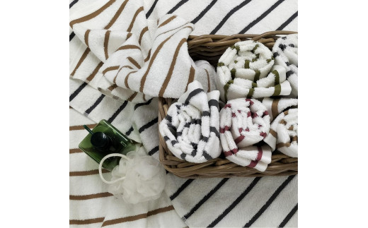 【フェイスタオル5枚組】オーガニックコットンフェイスタオル(34×80cm) しまふわST-F5