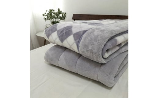 吸湿発熱あったかボリューム毛布(約140×220cm)グレー1枚&敷パッド(約100×205cm)グレー1枚のシングル掛敷セット