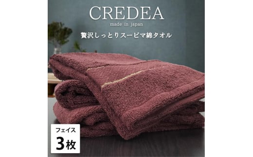 贅沢スーピマ綿フェイスタオル クレディア【ワインレッド】×3枚