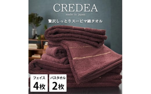 贅沢スーピマ綿タオルセット クレディア【ワインレッド】×1セット(同色フェイス4枚・バス2枚)
