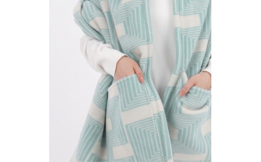 【ポケット付】洗えるタスマニアラムウール混大判ストール 70×180cm× グリーン1枚