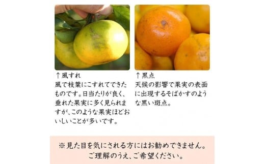 黒点・擦り傷・浮き皮など、外見に訳ありの果実をお届けいたしますが、「生傷(傷みが進んでいる果実)」が混ざらないよう、ひとつひとつ丁寧に選んでお届けいたします。